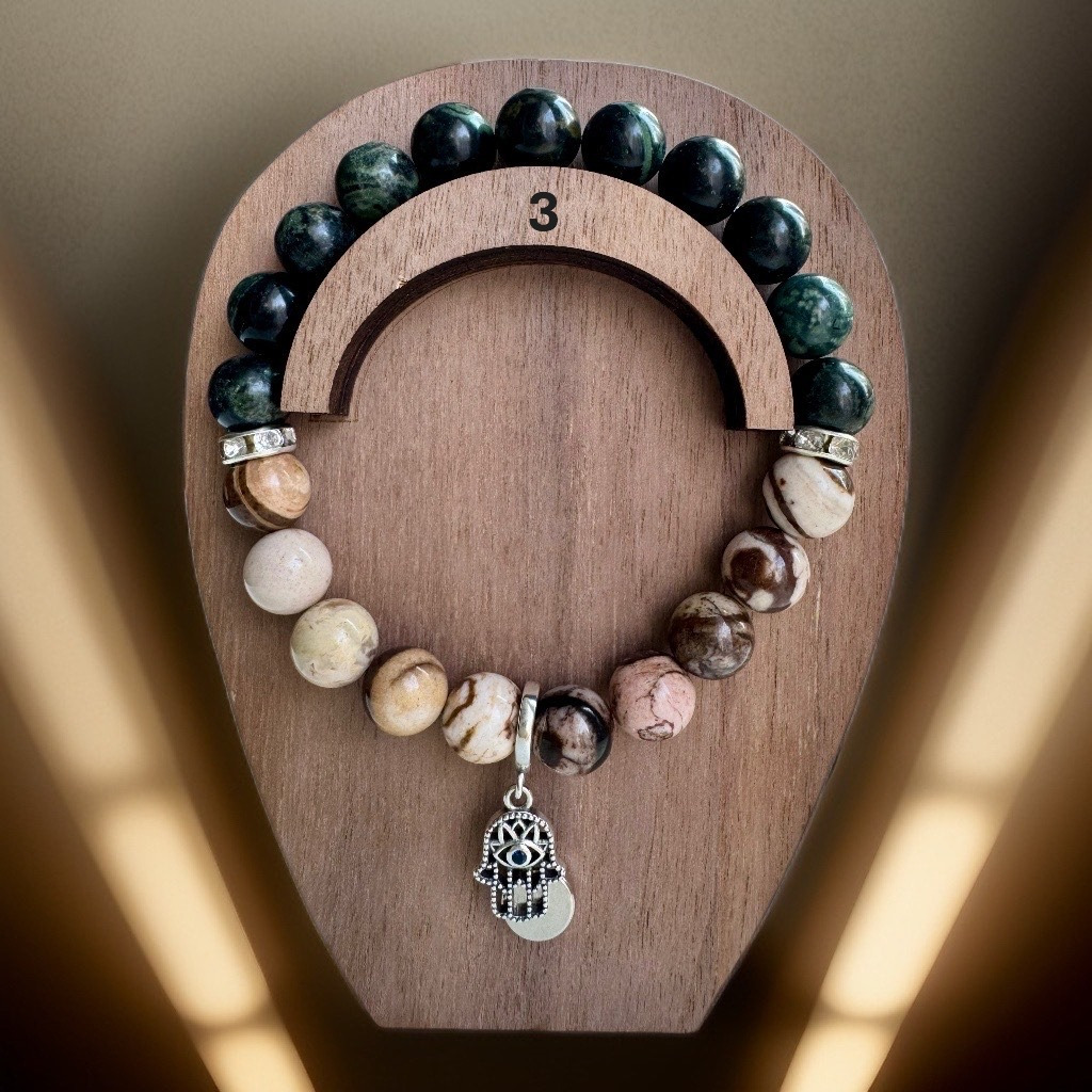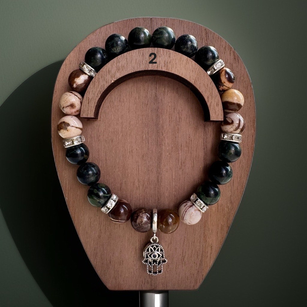 Kambabas jašmas spēja aizsargāt pret skaudību un negatīvām domām apvienojumā ar Brūnās zebras jašmas emocionālo līdzsvaru rada spēcīgu, bet harmonisku aizsardzību. Ahimsa ar aci pa vidu nostiprina nodomu dzīvot mierā, vienlaikus saglabājot modrību pret jebkuru potenciālu apdraudējumu. “Dvēseles patvērums” palīdzēs Jums saglabāt savu mierīgo telpu gan mājās, gan darba vidē, gan sabiedrībā, ļaujot būt iekšēji stabili un neiejaukties tajā, kas Jums neatnes labumu. Šis talismans sniedz drošības sajūtu un ļauj dzīvot saskaņā ar savu iekšējo ritmu, nepakļaujoties ārējam troksnim.