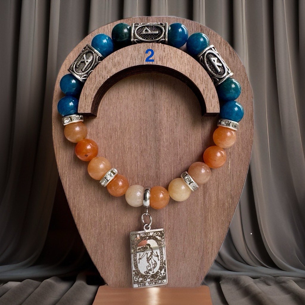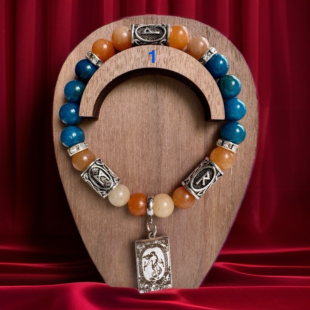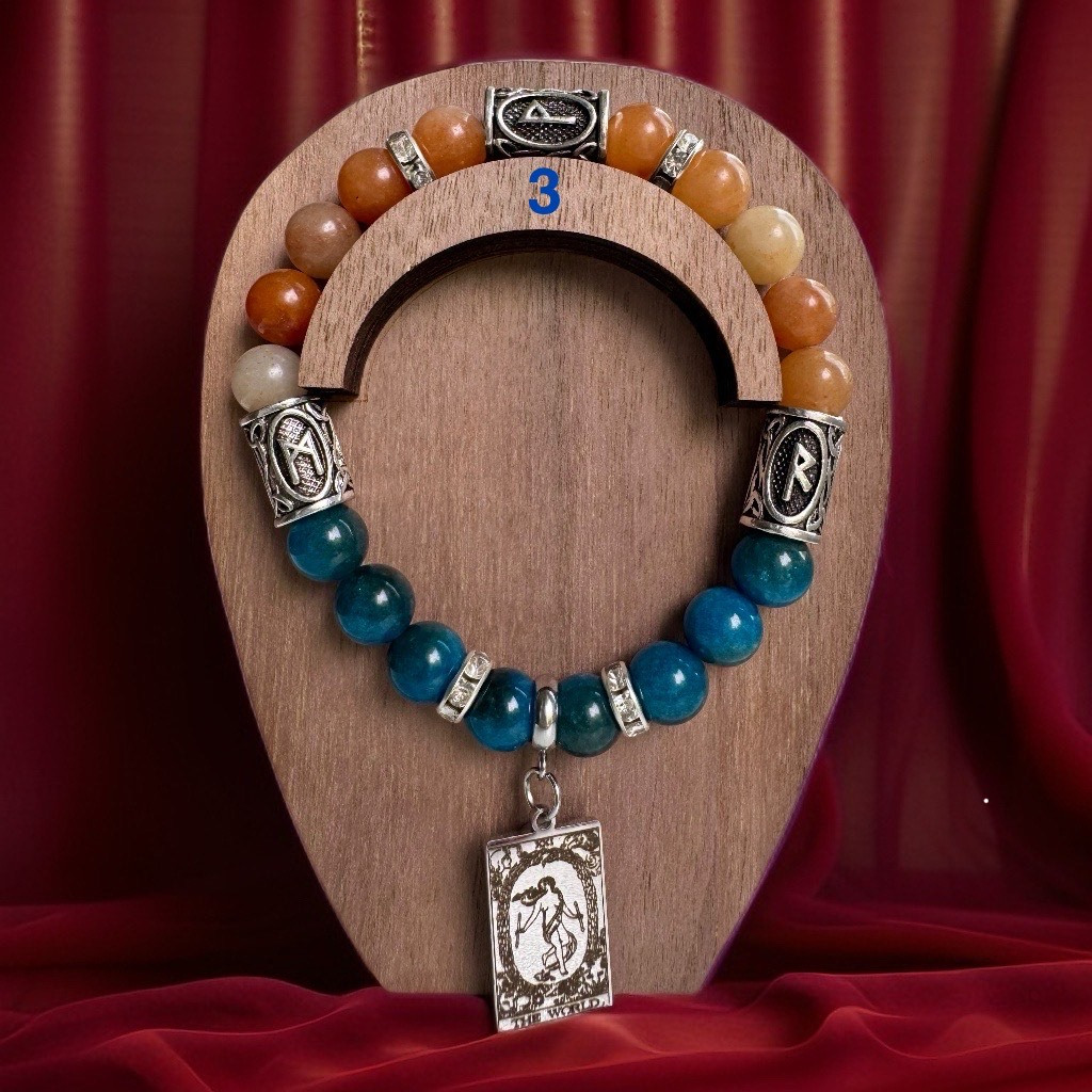 Šis talismans ir kā maiga, bet spēcīga plūsma, kas palīdz Jums palikt radošam, iedvesmotam un saklausītam visā projekta laikā. Oranžais avanturīns atver Jūsu radošo impulsu un palīdz tam dzīvot caur prieku un brīvību, kamēr Zilais apatīts palīdz idejas pārvērst vārdos, formās un uzrunājošās darbībās. Taro piekariņš Pasaule iezīmē Jūsu radošā darba kulmināciju – brīdi, kad viss kļūst pilnīgs un savienots. Rūnas Mannaz–Wunjo–Raidho aktivizē radošo domāšanu, ienes projektā prieku un ļauj tam attīstīties organiski, strukturēti un veiksmīgi. Šis talismans palīdzēs Jums sasniegt radošo mērķi ar vieglumu, iedvesmu un pārliecību par savām spējām, atverot durvis uz jauniem izpausmes līmeņiem.