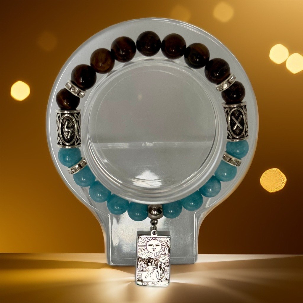 Šajā talismanā Saule arī savieno Tīģeraca un Zilā halcedona enerģijas vienotā, plūstošā spēkā. Tīģeraca drosmi un izturību tā apgaismo un pastiprina, pievienojot tam vieglumu un harmonisku plūsmu. Zilā halcedona mierīgo komunikāciju un sapratni tā uzlādē ar radošumu un spēju skaidri paust idejas, padarot sarunas pozitīvas un atvērtas panākumiem. Saule kā Taro simbols šajā talismanā palīdz radīt prieka un līdzsvara pilnu izaugsmi, kur profesionālie sapņi kļūst reāli un prieka pilni, izstaro apliecinājumu un drošību, ka izvēlētais ceļš ir tas īstais.